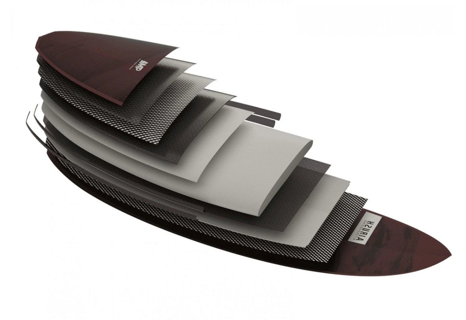 Celui-ci est ensuite pris en sandwich avec un sandwich en PET haute densité recyclé et un pont supérieur en carbone Innegra durable, avec un carbone orienté biaxialement sur le fond. Cette configuration optimise la résistance, minimise le poids et maintient un flex maximum.